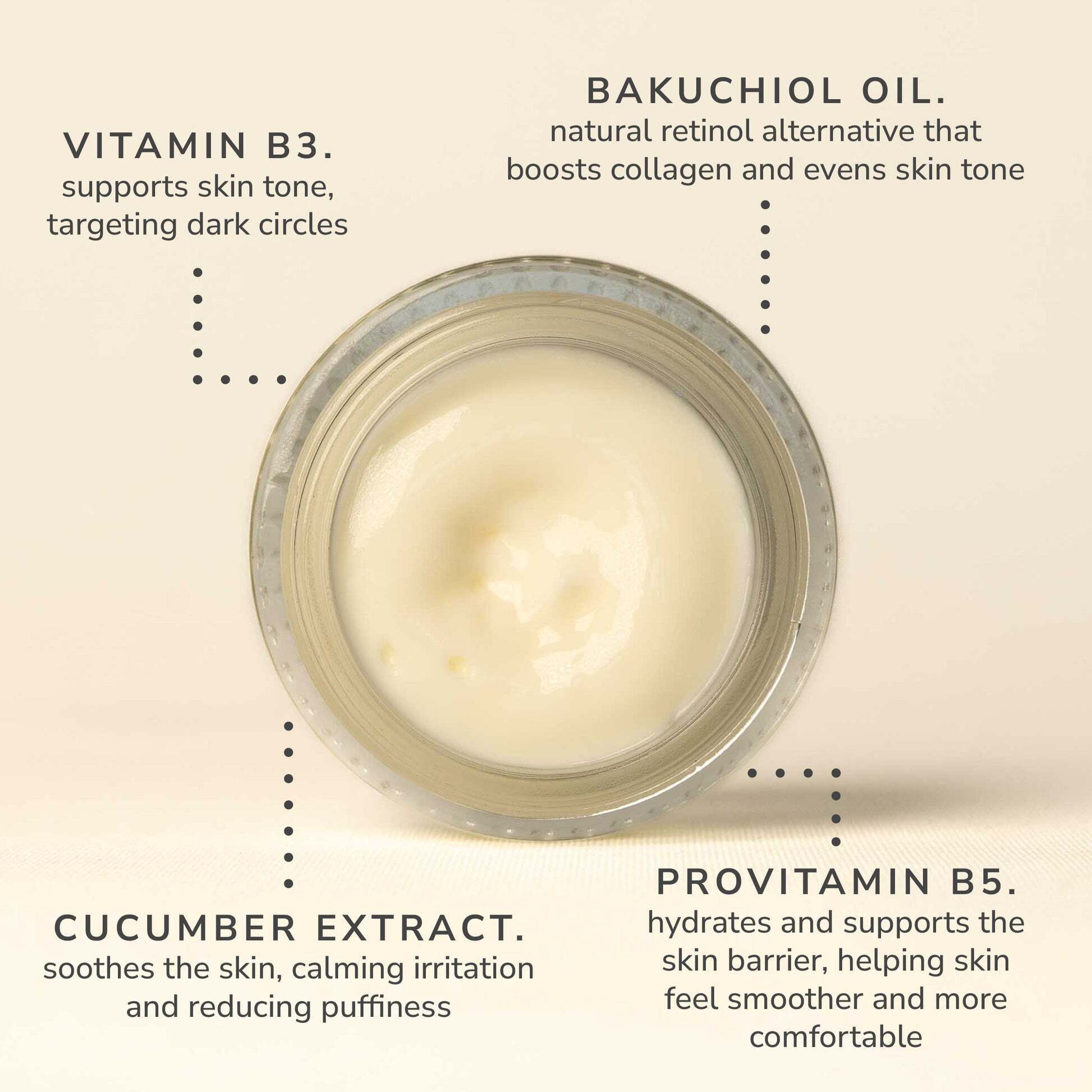 Bee Cosmetics deeply hydrating and illuminating eye cream to help improve the appearance of dark circles, fine lines, and puffiness for a well-rested look.